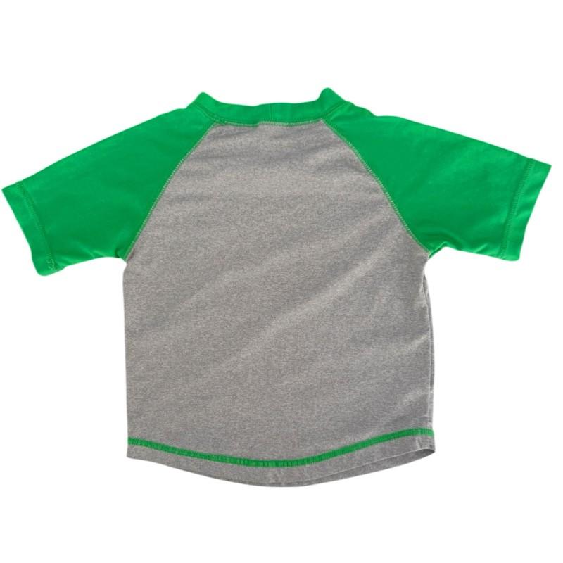 O modelo possui mangas em verde vibrante no estilo raglan e corpo em mescla cinza, garantindo charme extra e toque macio para a pele delicada do bebê. Confeccionada em tecido confortável, proporciona liberdade de movimento para acompanhar cada descoberta com leveza.