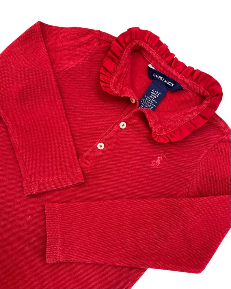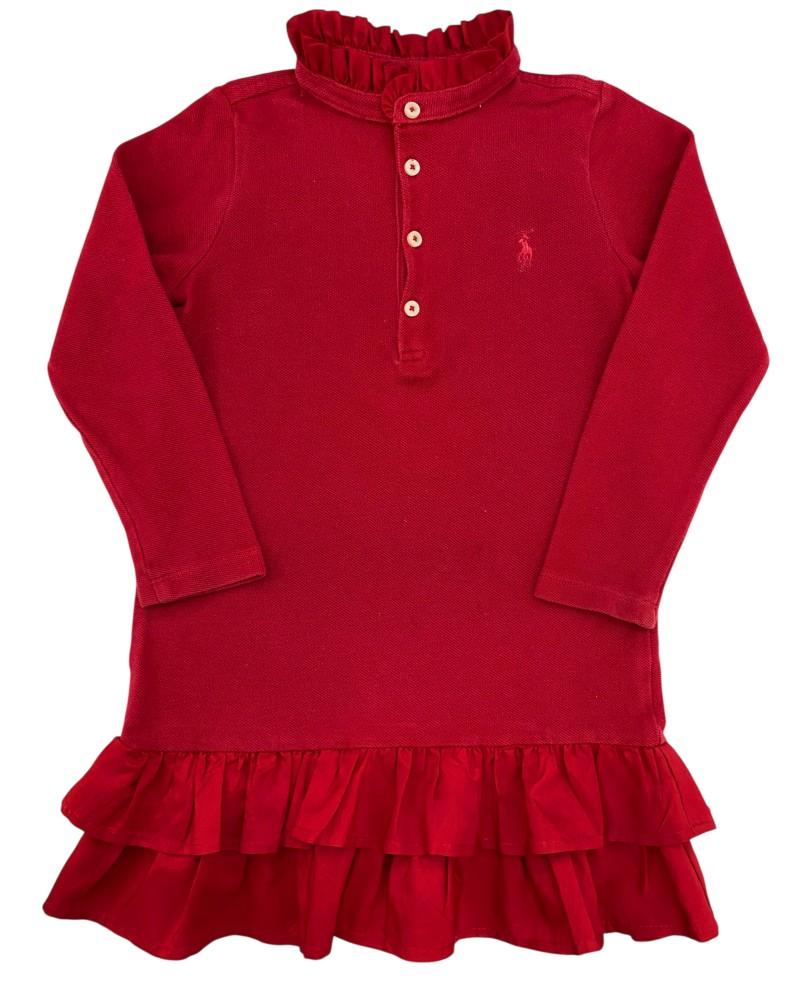 Vestido infantil Ralph Lauren na cor vermelha, confeccionado em tecido macio e confortável, ideal para todas as ocasiões. O modelo de manga longa garante proteção e aquecimento nos dias mais frescos, com caimento soltinho que permite liberdade de movimento. Detalhes delicados e o bordado discreto da marca unem estilo clássico e praticidade, tornando a peça versátil para o dia a dia ou eventos especiais.