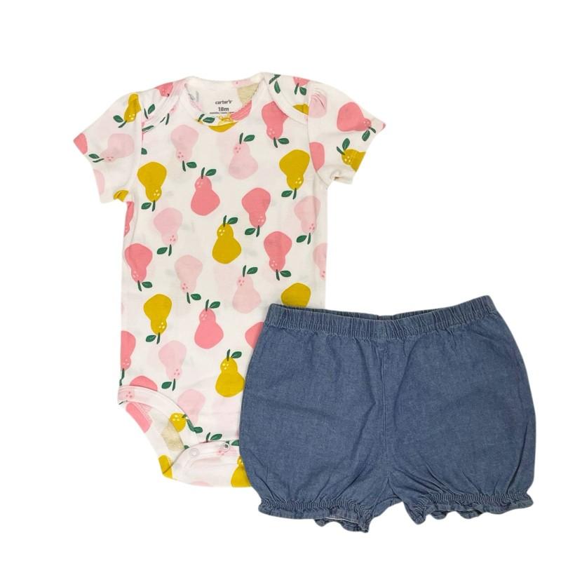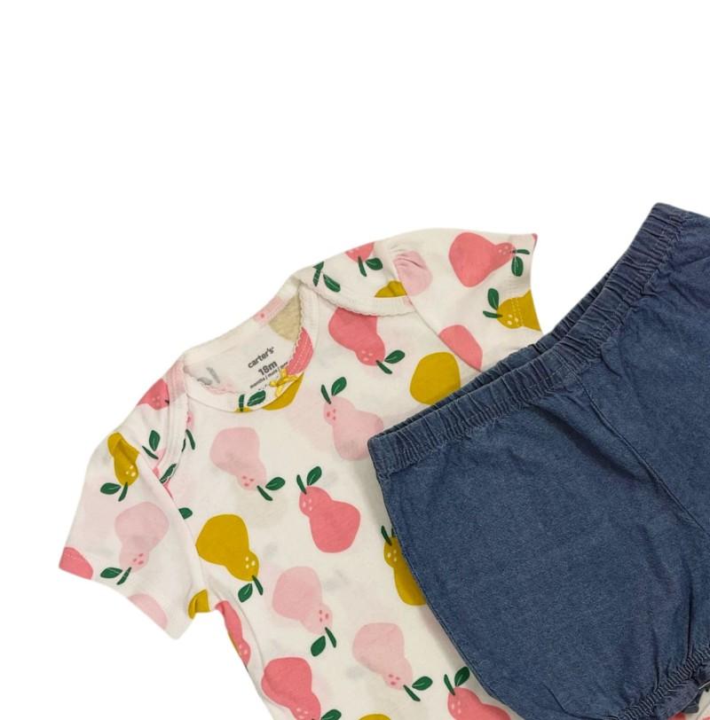 006 - Conjunto carter`s 2 peças Body Pêras Estampado e Short jeans