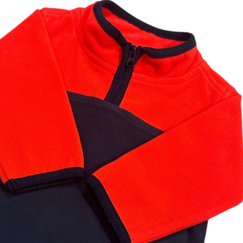 Mas cores laranja bem vibrante e azul marinho é a blusa ideal para aquecer seu bebê com estilo e com todo confortada marca.