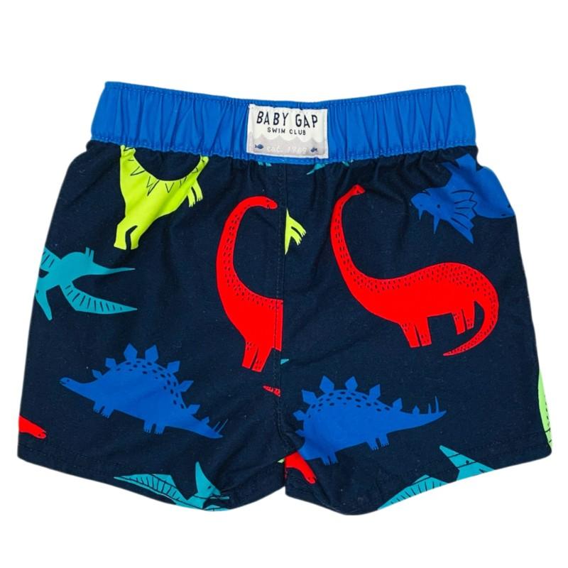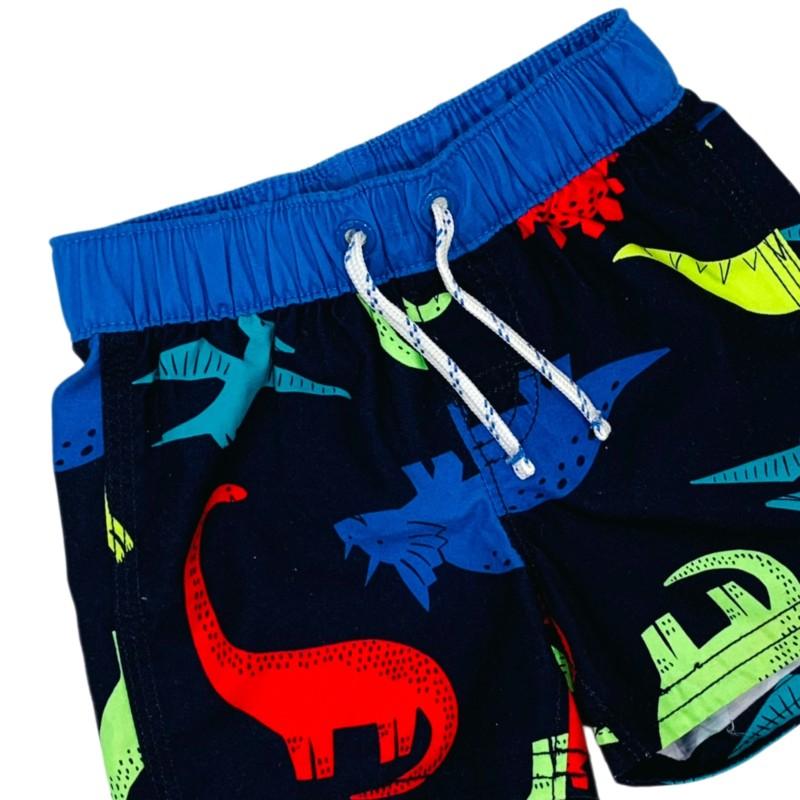 O destaque fica por conta da estampa divertida de dinossauros coloridos sobre o fundo azul-marinho, trazendo um toque alegre e cheio de personalidade. Ideal para passeios, praia ou piscina.