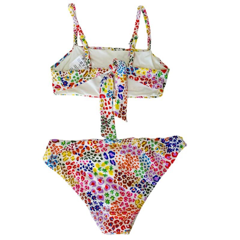 Biquíni infantil estampado com forro, mistura de elastano para priorizar o conforto, top com decote reto, amarração regulável nas costas.