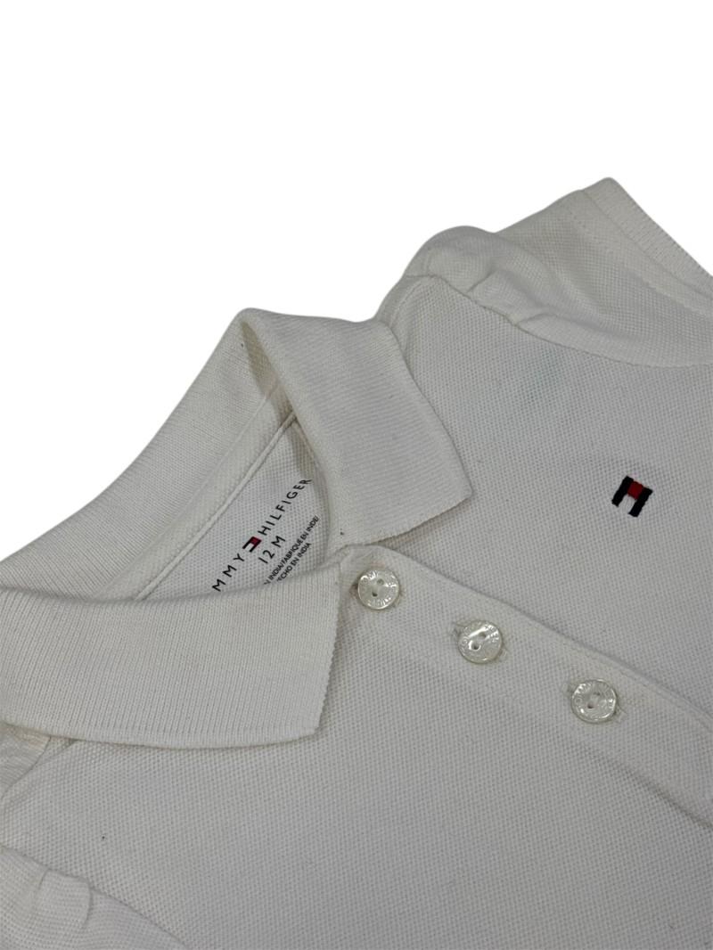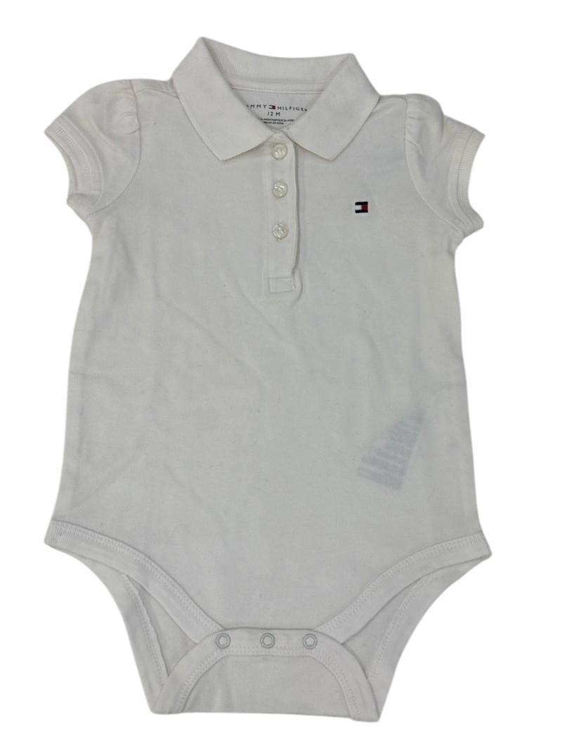 Bodie infantil da Tommy Hilfiger, confeccionado em tecido macio e de alta qualidade. Modelo confortável e prático, ideal para meninas de 12 meses, perfeito para o dia a dia com estilo e facilidade na hora de vestir.