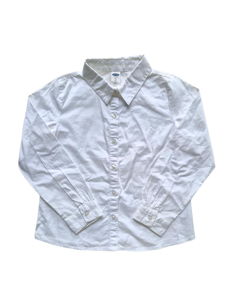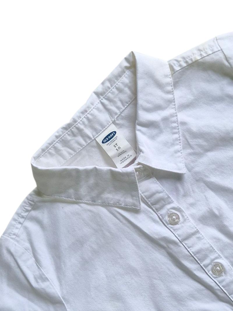 Camisa Social Infantil Branca Old Navy em tecido leve e confortável, com corte clássico. Versátil e elegante, perfeita para ocasiões especiais ou uso diário.