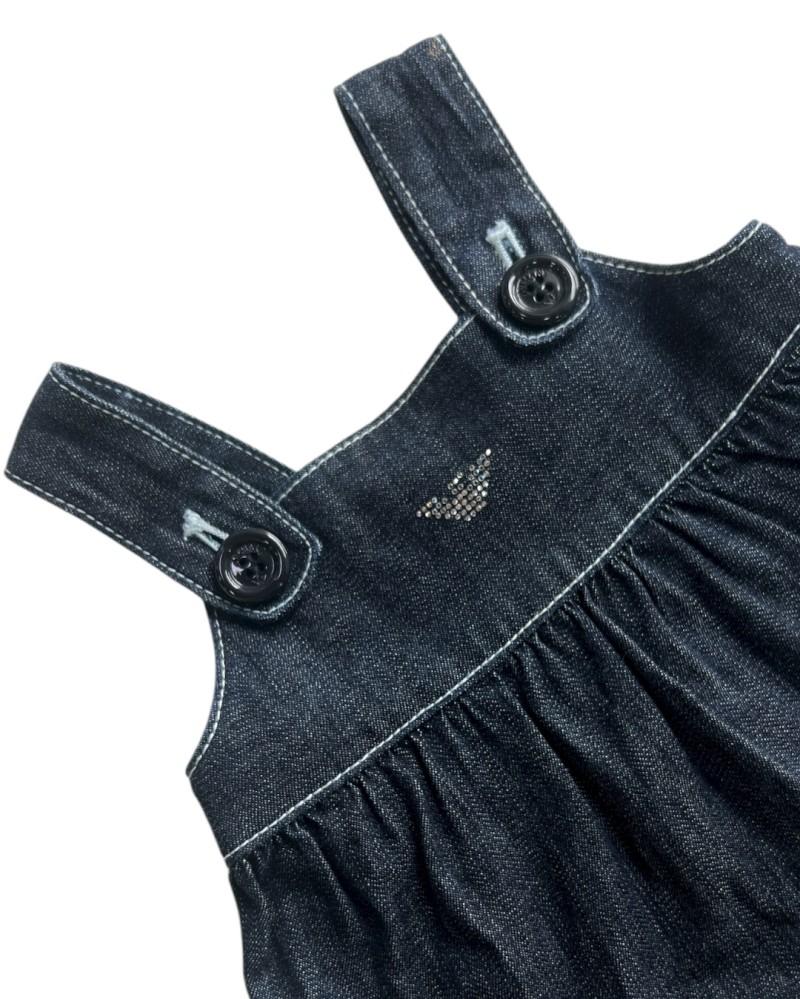 Delicada e versátil, esta jardineira saia jeans da Armani Baby combina praticidade e estilo desde cedo. Confeccionada com acabamento impecável, garante conforto para os bebês e o toque moderno característico da marca italiana, perfeita para compor looks cheios de charme no dia a dia.