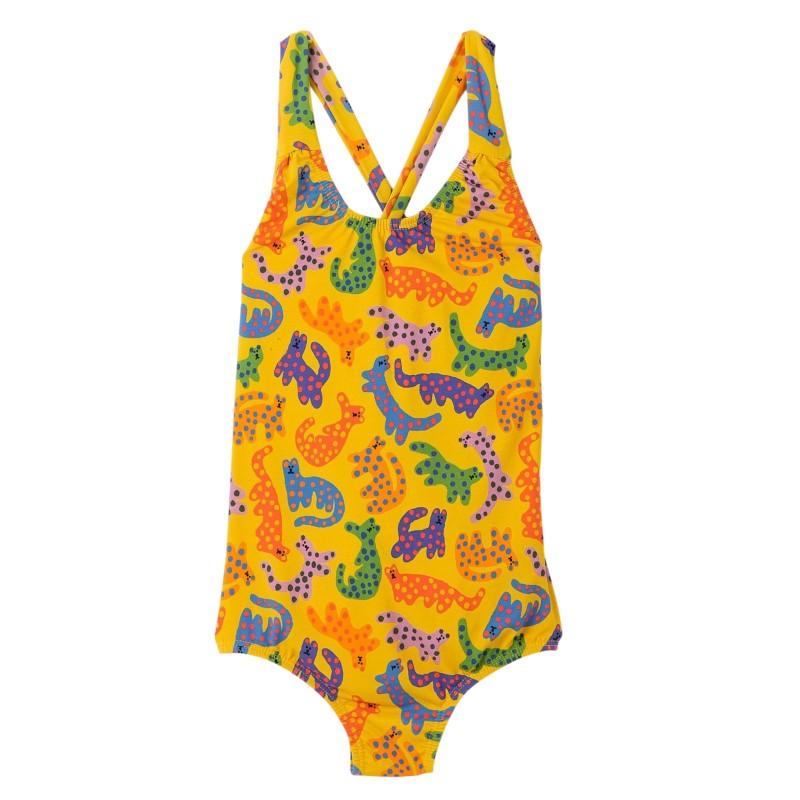 Maiô infantil com estampa coloridas. A roupa vem com forro, mistura de elastano para priorizar o conforto, decote em U e alças cruzadas nas costas com regulagem por amarração.
