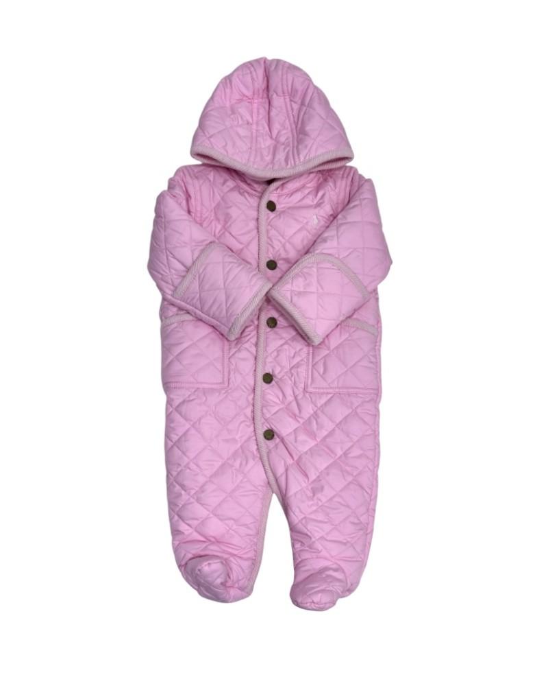 O Macacão Rosa com Pé Infantil Ralph Lauren é ideal para manter os bebês confortáveis e aquecidos com muito charme. Confeccionado em tecido macio e quentinho, possui fechamento frontal por botões de pressão que facilita na hora de vestir e trocar. A peça conta com pezinho fechado para maior proteção térmica e o clássico logo da marca bordado no peito, trazendo um toque delicado e sofisticado ao visual.