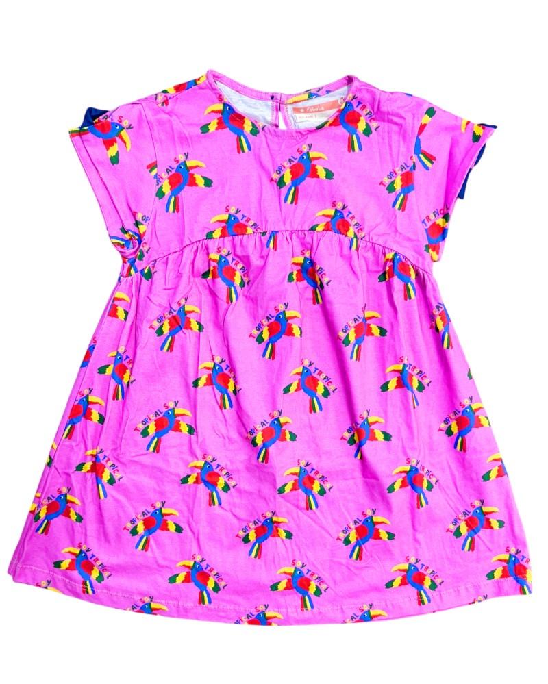 Este vestido da Fábula é feito em malha de algodão, proporcionando conforto o dia todo. Com design leve e estampas divertidas, é perfeito para as brincadeiras e momentos especiais.