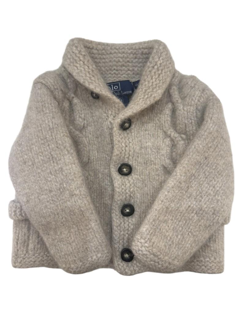 Adorável cardigan Polo Ralph Lauren, tamanho 12M. Confeccionado à mão ("Hand Kn."), esta peça oferece conforto e estilo excepcionais para os pequenos. Ideal para manter seu bebê aquecido com um toque de elegância clássica.