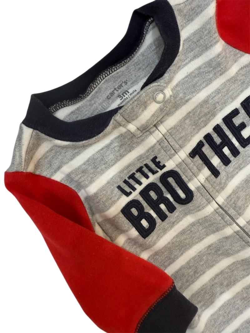 Perfeito para a hora de brincar ou passear, o macacão conta com mangas longas, pézinho com estampa de tênis, zíper do decote ao tornozelo e fechamento de segurança, que protege o queixo do bebê. O detalhe da estampa em inglês dizendo Little Brother, garante o mood divertido da produção. Conforto e fofura para o dia a dia!