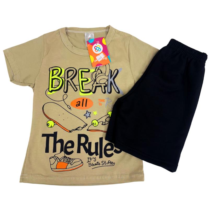 Conjunto Infantil Ping Pong - Camiseta Bege “Break All The Rules” + Shorts Preto