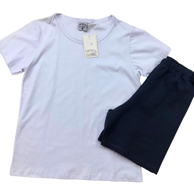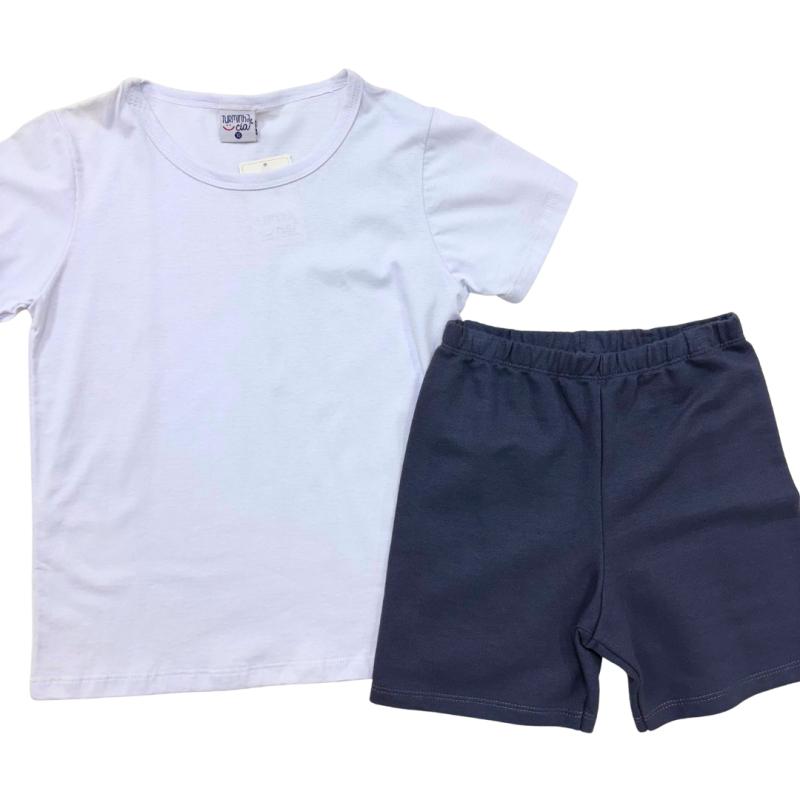 Conjunto Infantil Turminha & Cia – Camiseta Branca Básica + Bermuda Azul Marinho