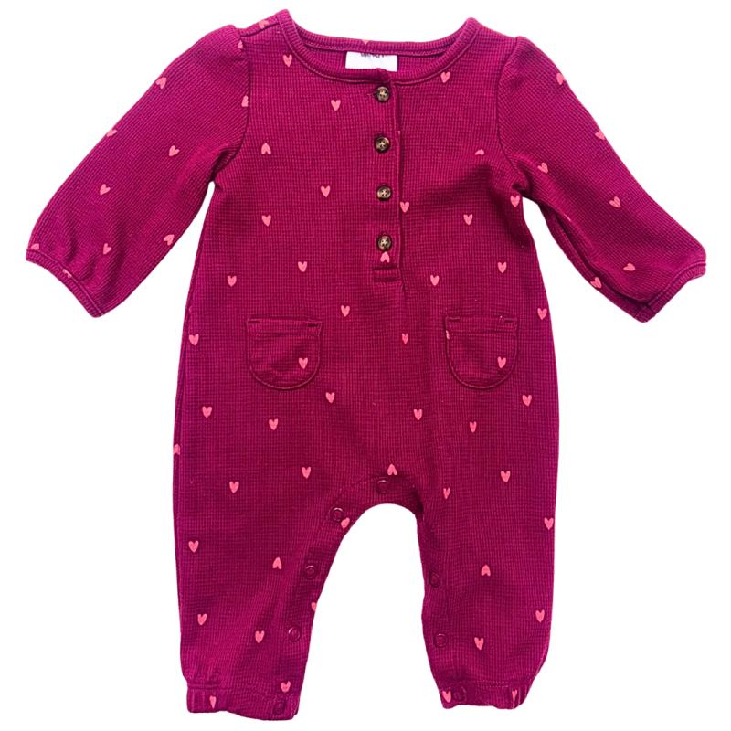 Macacão Carter`s Infantil Canelado Rosa com Estampa de Corações – Bebê Menina