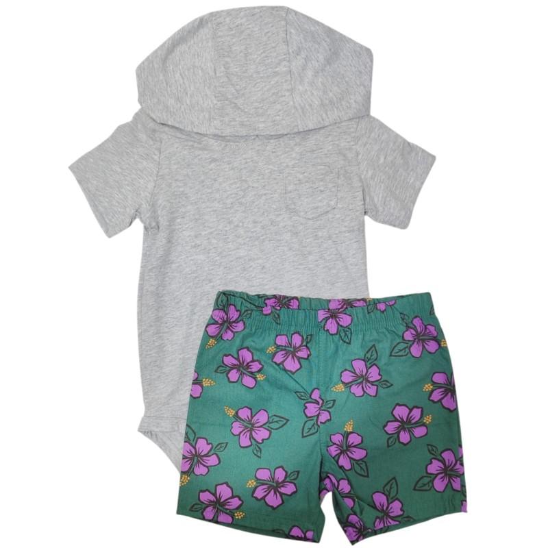 Esse conjunto une o conforto do body com capuz e o charme das flores tropicais, criando um look leve e cheio de personalidade.