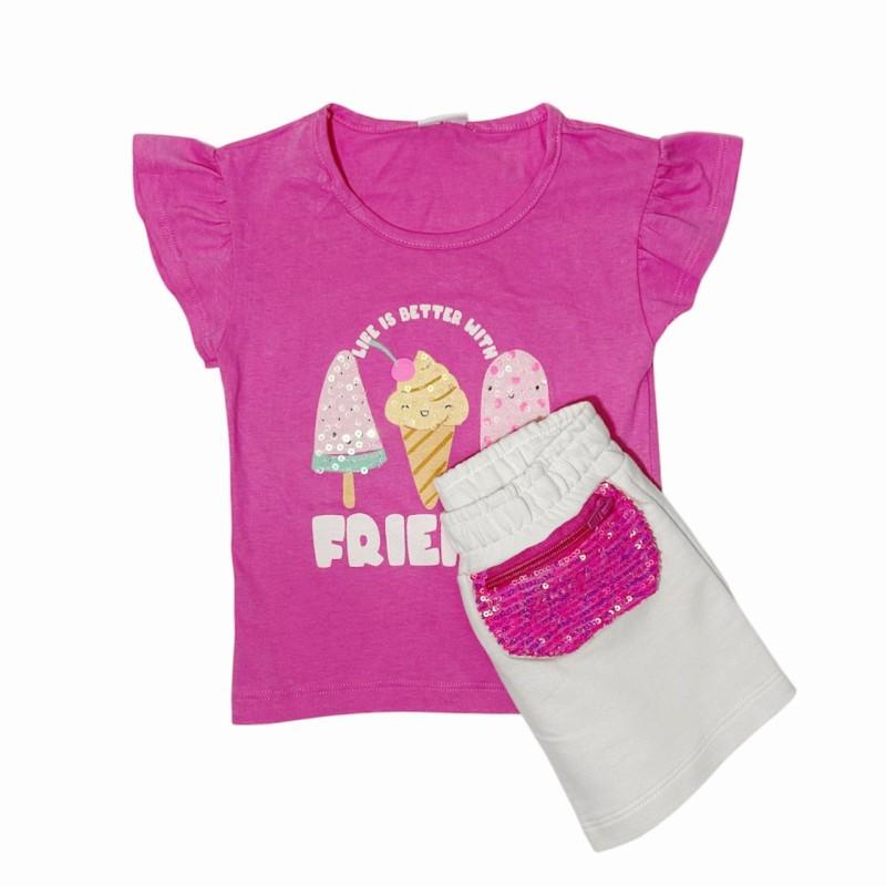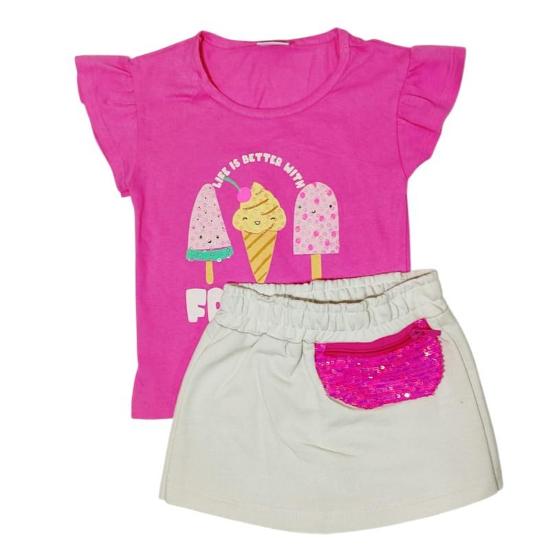 Esse conjunto é ideal para passeios, festinhas e momentos cheios de alegria. A blusinha divertida combinada com a sainha moderna cria um visual encantador que toda menina vai amar!