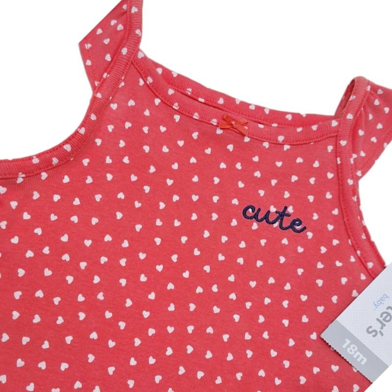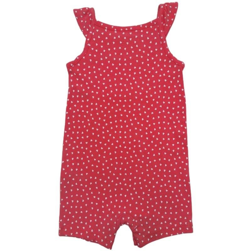 Macaquinho com estampa de coração e manga tipo alcinha, coleção verão, bem fresquinho, confeccionado em algodão (100 %), com fechamento práticos com botões de pressão entre as pernas (entrepernas) para facilitar a troca de fraldas.