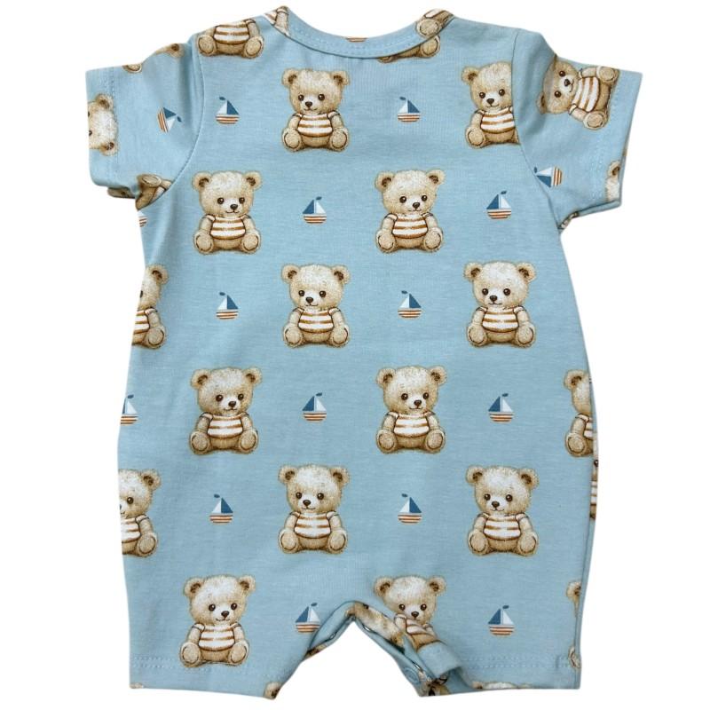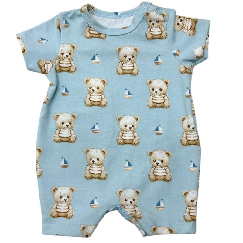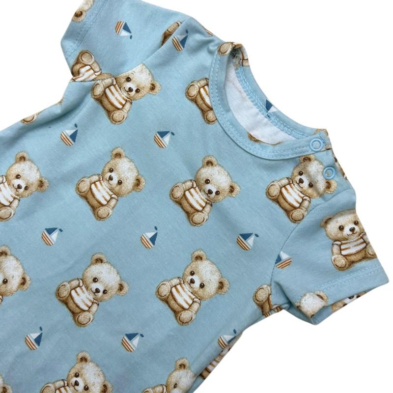 Opção perfeita em cor azul bebê e estampa de ursos que traz todo um charme além de botões na gola e em baixo para facilitar o uso.