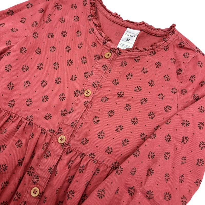 O modelo tem botõezinhos frontais, estampa delicada de folhinhas e um corte soltinho que garante liberdade nos movimentos. É prático, versátil e fácil de combinar — vai bem com uma sandalinha nos dias de calor ou com um tênis e jaquetinha nos dias mais frescos.