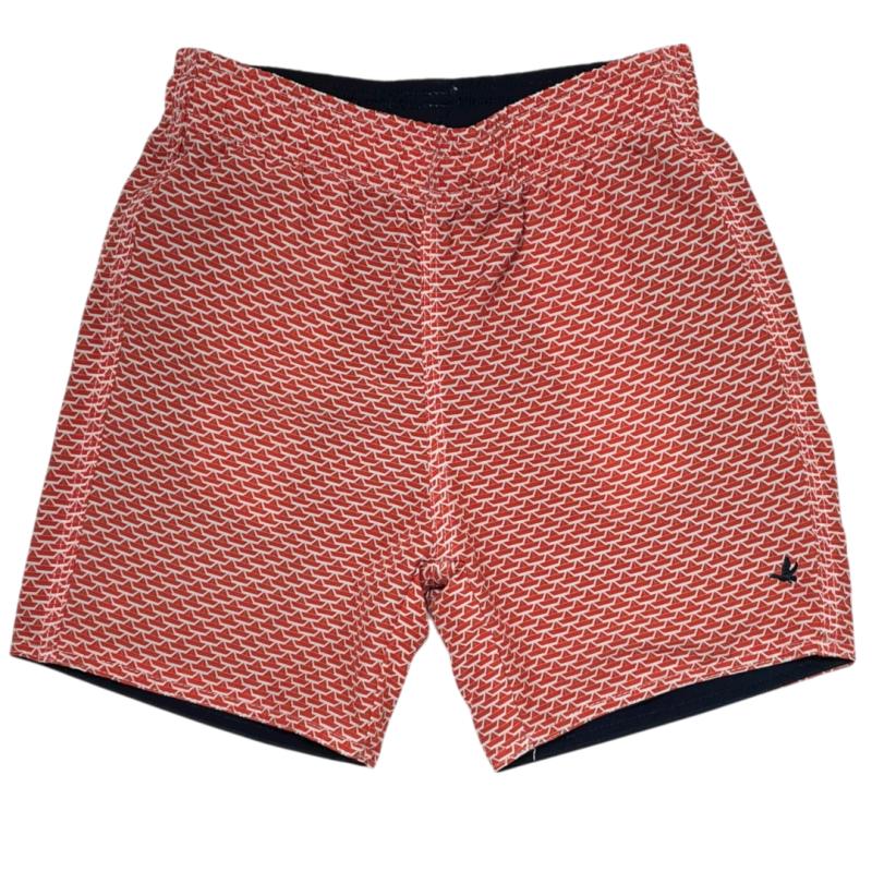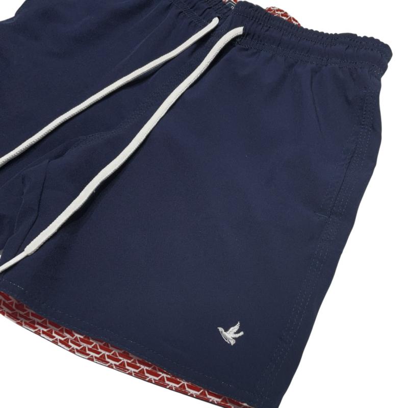 Uma bermuda ótima para passar alguns dias viajando, em dupla face, um lado estampado e outro em azul escuro.