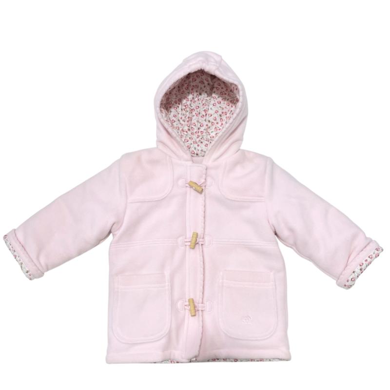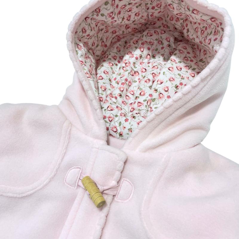 Casaco quentinho de lã da marquinha BabyCottons, cota com capuz e fechamento de zíper e botões, bolsos na frente e forrado por dentro com um tecido floral lindo!!