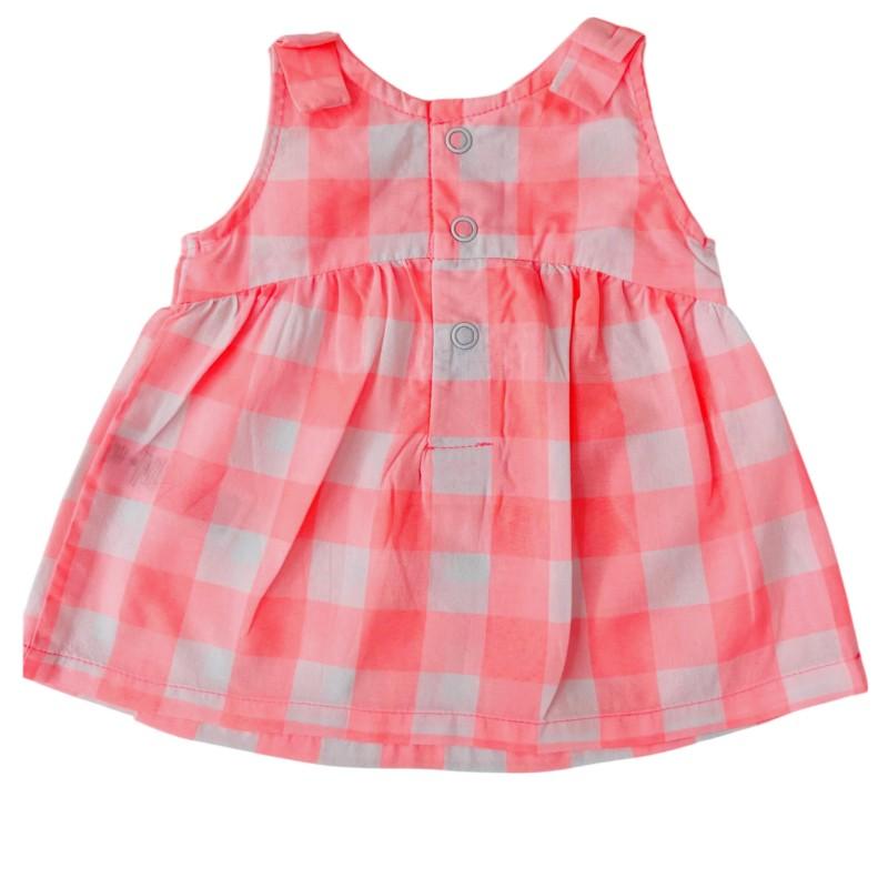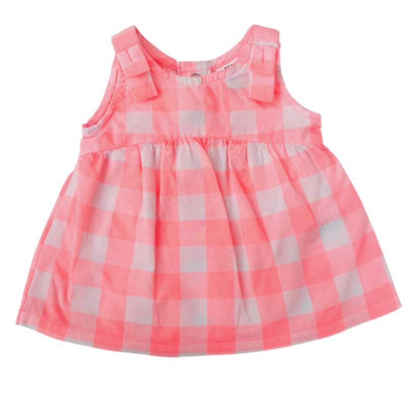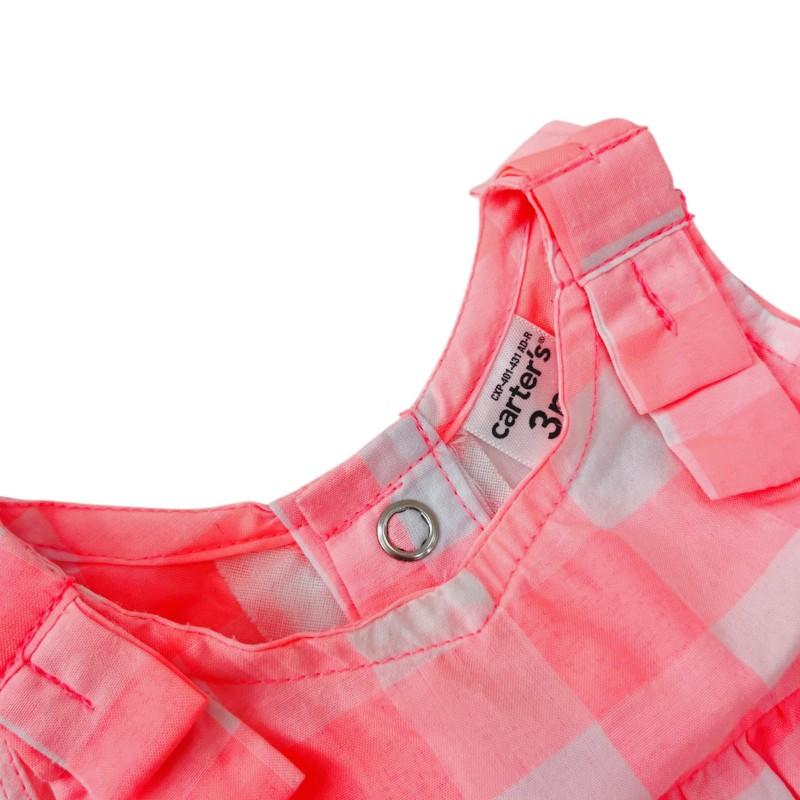 Blusinha xadrez rosa neon e branca da Carter’s para bebê. Manga tipo regatinha, tecido fresquinho e com botões de pressão na parte de trás. Veste 3 meses